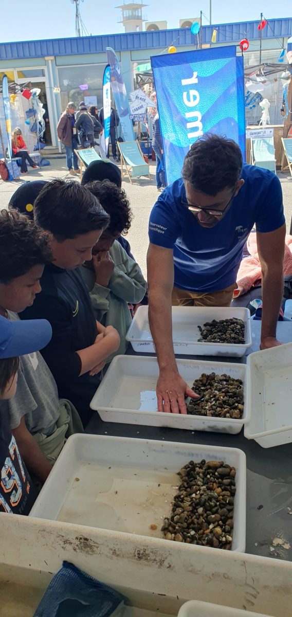 Pendant la matinée, accompagnés par les scientifiques de l’institut français de rechercher de la mer (IFREMER),nous avons étudié le plancton (zooplancton et phytoplancton) au microscope. Incroyable tous les êtres vivants animaux et algues qui existent (des algues, des larves de coquillages et de crustacés, …) et que l’on ne voit pas à l’œil nu.